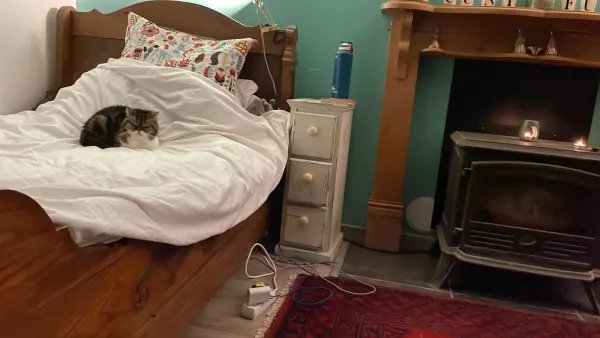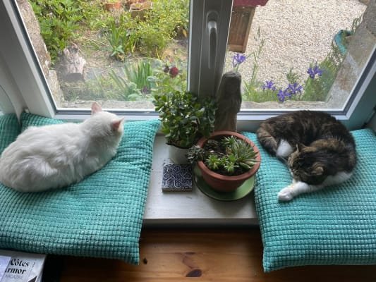 I'm a composer and travel a lot for work. I have 4 kitties and a garden so often need someone to hang out here and keep stuff alive. The house is a small cottage in the middle of nowhere, so it's really peaceful. The neighbours are lovely and the sea is about 30 mins away by car. You can wake up to bird song and just chill out in the garden with your breakfast. Small cottage with wood burning fire, solar panels, large garden, polytunnel and fire pit. Calm and tranquil, wake up to birdsong every day. The blackbird will sing you to bed in the evenings. Lovely neighbours, surrounded by farmland and at the end of a lane with no through road. About 10 mins by car to the nearest shop, post office, pharmacy, doctor, bank and petrol. You really need a car here I'm afraid. The nearest town is about 10 minutes by car and there is no public transport at all. If you had an emergency or needed to take a cat to the vet you would definitely need a car (or motorbike). It's 30 mins to the beach by car, also some lovely chateaux and gardens to visit. Forest walks within 15 mins, big lake walk at Callac. Fishing, swimming watersports, kite surfing, parascending all at the beaches near by. Mobility! It is possible to live on the ground floor, there is a bed in the lounge which I use in the winter (sleeping next to the wood burner is very cosy!). There are two steps up into the front door (shallow and wide) and two narrow steps down into the kitchen, and a small step up into the shower. There is a chair in the shower. The driveway is gravel so bad for wheelchairs. I do have a couple of metal ramps in the garage which I can let you use to lay out on the gravel. I'm planning to make a boardwalk over the gravel for wheelchairs but currently haven't got it. I would say it's probably not possible for a full time wheelchair user but if you can do a couple of steps with sticks you might be OK. Let me know if you want to discuss this and I'll try to figure something out for you. The only phone network which works here is Orange (or SOSH which is essentially the same company). You'll need a SIM card which works in France and can get on the Orange Network. The house is in the process of being decorated slowly! So there are areas where it needs some paint and plastering. I hope that's OK for you. It's not perfect but it's cosy. I would ask that you don't post any photos or videos of my home and garden online. Thanks.